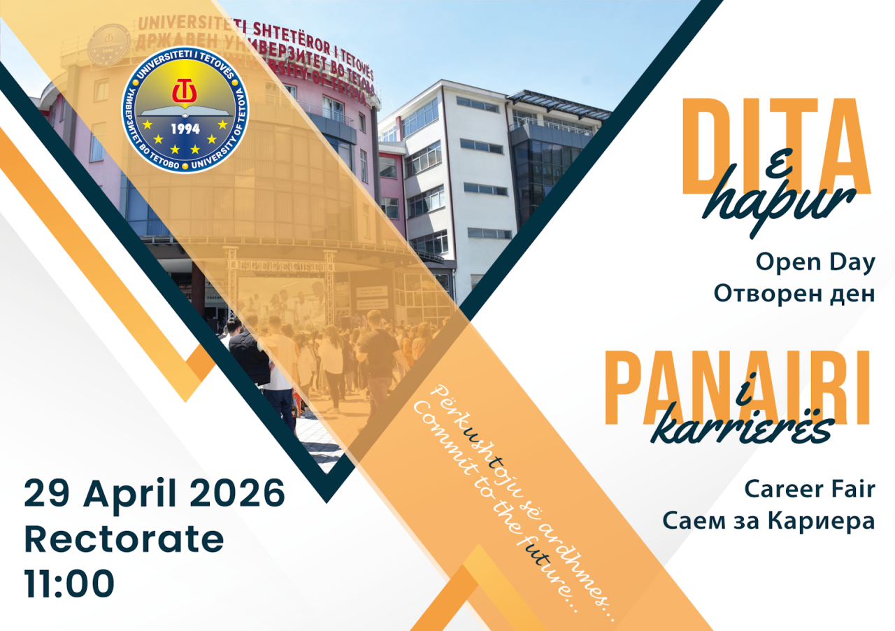 Universiteti i Tetovës përmes Fakultetit Ekonomik, më 21 prill 2026, e organizoi punëtorinë “Ekonomistët e së ardhmes” - aktivitet i dedikuar për maturantët e shkollave të mesme, të cilët patën mundësinë të njiheshin [...]