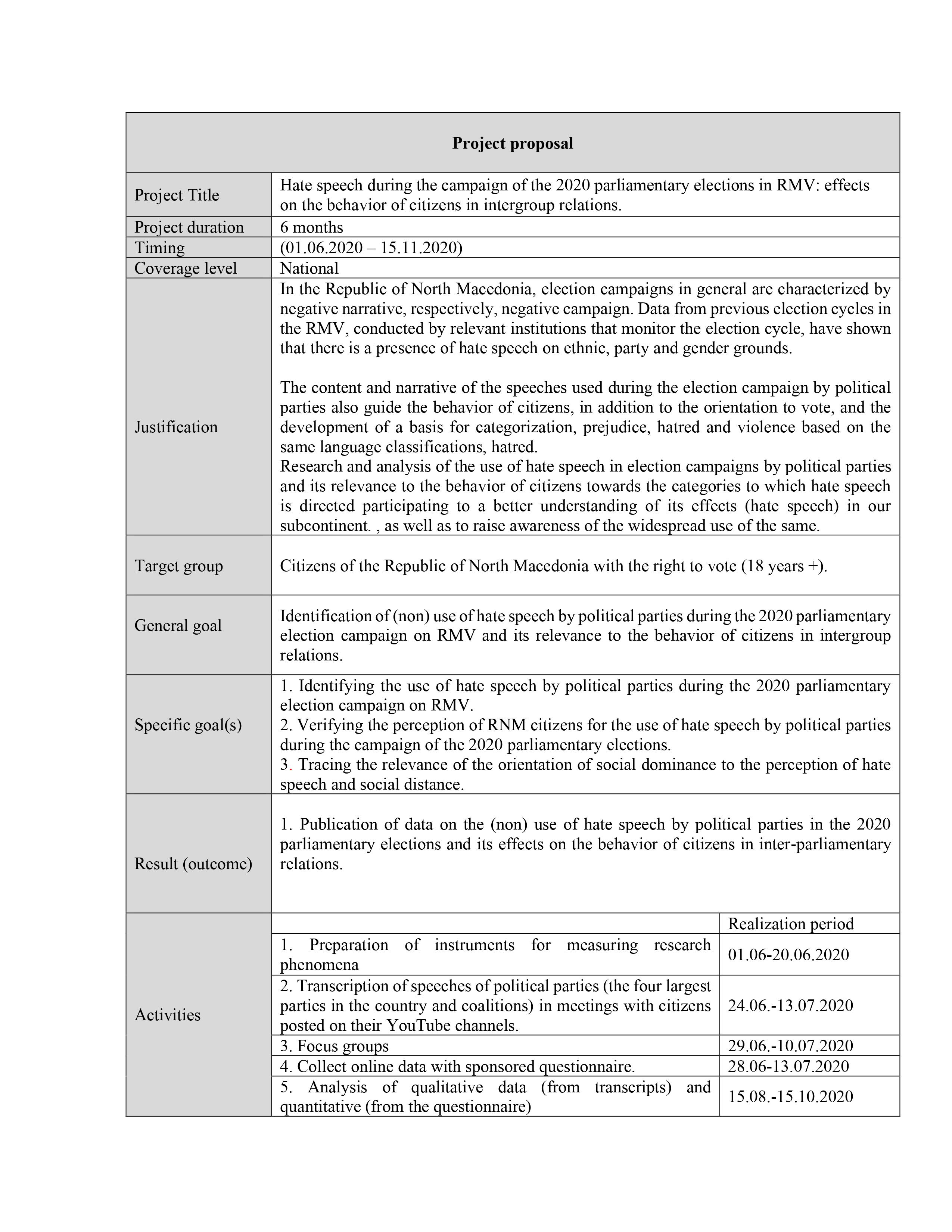 In recent years the Center has focused on areas of international security, peacebuilding and hate speech phenomenon in the Republic of North Macedonia.