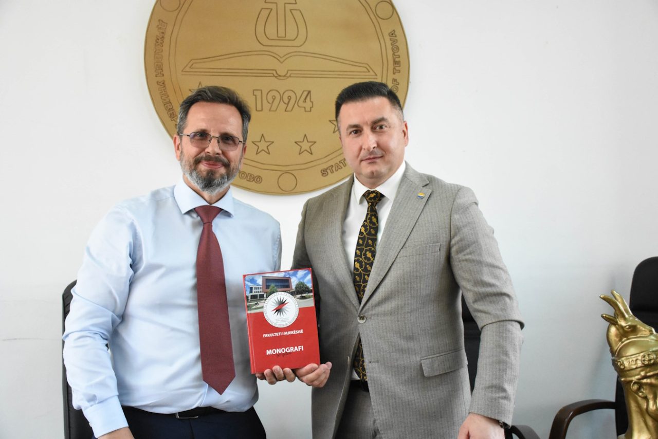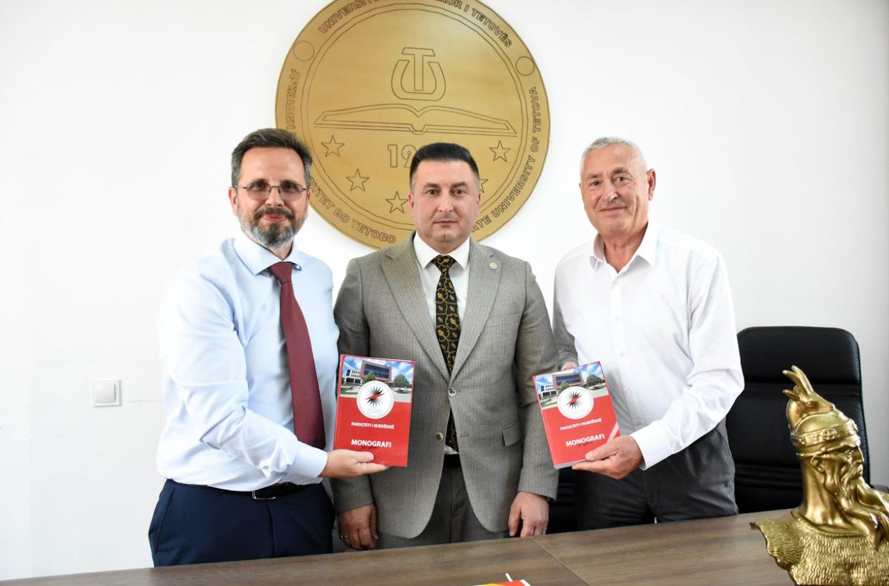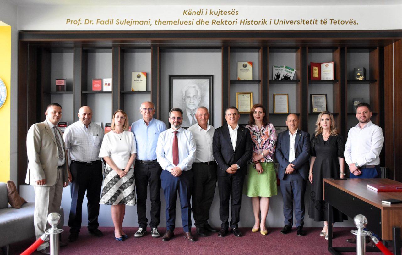 Në një frymë bashkëpunimi akademik dhe profesional, sot në ambientet e Universitetit të Tetovës u zhvillua një takim pune mes Rektorit të Universitetit të Tetovës Prof. Dr. Jusuf Zejneli dhe Kryetarit të Senatit Prof. Dr. Kenan Ferati me drejtuesit e Fakultetit të Shkencave Mjekësore të Universitetit të Tetovës të udhëhequr nga dekani Prof. Dr. Nevzat Elezi dhe Universitetit të Prishtinës “Hasan Prishtina” drejtuar nga dekani Prof. Dr. Sefedin Muçaj.