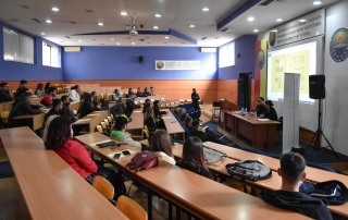 Initially Mr. Robert Aliaj thanked the leaders of the Faculty of Arts of UT for the hospitality and the opportunity offered to present his project to the students of the Faculty of Arts in Tetovo.
