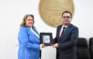 “Academic dialogues with the students and academic staff of the University of Tetova” was the theme of the activity that took place at our University by the Ministry of Defense of the Republic of North Macedonia. This event was organized on the occasion of NATO Day and the 3rd anniversary of North Macedonia’s membership in the North Atlantic Alliance. On this occasion, the Rector of the University of Tetova, Prof. Dr. Kushtrim Ahmeti, accompanied by the President of the Senate, Prof. Dr. Vullnet Ameti, the Vice-Rectors and other associates welcomed the Minister of Defense, Slavjanka Petrovska, the Minister of Economy, Kreshnik Bekteshi and the Brigadier General, Besnik Emini. In this meeting, in addition to the activities carried out by our institutions it was discussed about the importance and role of NATO in terms of political aspects, security, peace, stability, but also economic development. Rector of our university, Prof. Dr. Kushtrim Ahmeti, in his speech addressed to students and professors, said that, as we celebrate today the 3rd anniversary of North Macedonia’s membership in NATO, we say with that this is a historic and vitally important moment for our country. “The University of Tetova remains committed to play an active role in the Euro-Atlantic integration of our country, through educational and scientific activities, as well as our collaborations with other institutions and organizations. We are proud to stand here today as a member of the NATO community and we are committed to work together with our allies and partners to ensure a safer and more prosperous future for all. Membership in NATO has brought numerous benefits to North Macedonia, both in terms of security and economic development. As a member of NATO, North Macedonia has access to the alliance’s collective defense capabilities, which include a powerful system of mutual assistance and cooperation in the event of an attack on any member state”, emphasized Rector Prof. Dr. Kushtrim Ahmeti.