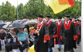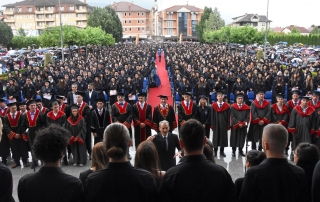 The main and concluding speech of this ceremony was given by the Rector of the University of Tetova, Prof. Dr. Vullnet Ameti. He, initially on behalf of the University of Tetova and on behalf of the graduates of this generation expressed the common joy that after two years we again organize one of the main events in this institution of higher education in the Albanian language. “The global Covid-19 pandemic has caused the whole world to change the course of life, reorganize the work of institutions, with the sole purpose – to protect life and prevent the mass spread of the Covid-19 virus. Due to the global health crisis and restrictive measures for the organization of public activities, last year we could not organized the graduation ceremony for graduates in the academic year 2019/2020. Therefore, today let us express our gratitude and appreciation to hundreds of our graduates for their understanding and fair appreciation of the overall situation. It is worth mentioning that the University of Tetova, through the Faculty of Medical Sciences, academic staff, our doctors, who in the first days of the declaration of the pandemic were engaged in the first line of battle against the invisible enemy. Also twelve other academic units, namely our faculties, contributed in various ways, organizing online activities to raise public awareness, to respect the measures against the spread of Covid – 19. Therefore, even today, in this great event, we express our boundless gratitude to our doctors – heroes, for the sacrifice, dedication and uncompromising fight against the plague of this century. Meanwhile, today, thanks to the improvement of the epidemiological situation, the facilitation of measures, but always in implementation of the protocols of the health authorities, our graduates, doctors, engineers, historians, pedagogues, psychologists, lawyers, economists and linguists of the future, who solemnly conclude one of the most beautiful periods of life and together with parents, family and professors, celebrate their common success”- said the Rector of the UT, Prof. Dr. Vullnet Ameti.