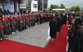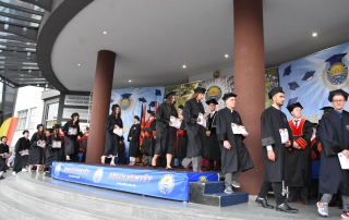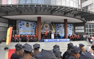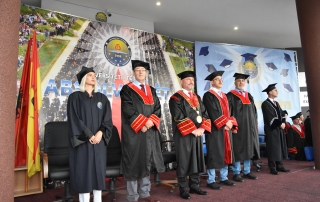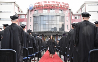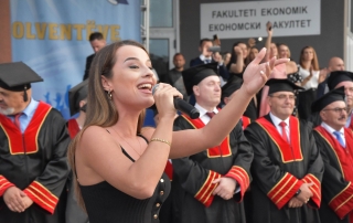 Then, with the call of the Rector to make this manifestation even more beautiful, in the Rectorate Square, around 1000 thousand graduates threw their hats, marking one of the most beautiful events in their career during their studies. The ceremony ended with an artistic program by the famous singer in Tetovo, Elita Ziberi.