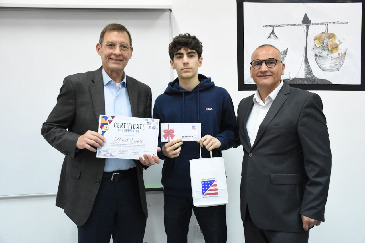In his opening speech, MSc. Gëzim Sulejmani, coordinator of the American Corner – Tetovo, expressed deep gratitude to all those who contributed to the success of the competition. “We are grateful to all our partners – the U.S. Embassy in North Macedonia, the Municipality of Tetovo, the University of Tetova – and the extraordinary support from the Peace Corps volunteers, ACT interns, and our volunteers at the American Corner. This event would not have been possible without your time, passion, and dedication”, said Sulejmani.