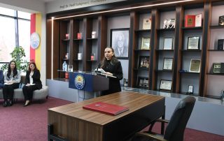 During this literary hour, were recited the poems “Atdheu” (The Homeland) by student Egzona Misini and “Vajtim për robëri të shqiptarëve” (Lament for the Slavery of Albanians) by student Sibora Hoxha. The event concluded with an artistic performance on violin by Zulejha Saiti, a student from the Faculty of Arts.