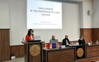 Part of this panel were: Dr. Spec. Arben Rexhepi – pulmonologist who presented the topic: “Challenges in the diagnosing of lung cancer, Dr. Spec. Visar Xhaferi – Specialist in thoracic surgery, who presented the topic: “The importance of lung cancer screening” and Ass. Dr. Learta Asani – specialist of pathology, who presented the topic: “Classification of malignant lung tumors according to the WHO”.