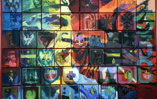Professor Jëlldëz Asani, said that this work has been a challenge, not only for Professor Miftar Memeti, known for his capital works “Mother Teresa” and “100th Anniversary of Independence” but it was a very difficult challenge for the 50 young artists involved in finalizing the giant portrait of Skanderbeg. “Entirety of the panel with the combination of acrylic colors on canvas, consisting of 50 pieces, contains of 32 heraldic symbols modified in different ways by the artists, 5 transformations of the figure of the eagle in folkloric view, 6 versions of the figure of Skanderbeg, an image from sigillography, finalized with a verse from the national anthem, linked by the mosaic system, depicts the giant portrait of Skanderbeg. The portrait is accompanied by other symbols also. The tangible work with 50 paintings as shreds of an existential mosaic rich in color which conveys a symbolic and figurative meaning” – said professor Jëlldëz Asani.