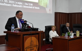 The author of the book, Ambassador Arben Cejku, in front of the audience where were many personalities of academic, political and social life were present, such as the Rector of UT, Prof. Dr. Reshat Qahili, Vice-Rector for Education, Prof. Dr. Vullnet Ameti, General Secretary, Adem Beadini, the President of DUI, Ali Ahmeti, First Deputy Prime Minister, Artan Grubi, professors and students, said that for sovereignty, integrity and dialogue it cannot be spoken of anywhere better than at the University of Tetova. “We have here the book in two words – three words, sovereignty, integrity, dialogue. Where better than here we can talk about sovereignty, integrity and dialogue. I want to translate it here in the Republic of North Macedonia because we talked about Kosovo, once again there. Here, in the country where you are the factor of stability, the factor of peace, the factor of sovereignty of North Macedonia and the role you play here is very important to understand this book, or to understand this message. I came here and I have chosen to come here, and I am grateful to the University of Tetova for giving me the opportunity to bring some messages and not just to promote a book, which today in the digital age can be promoted in any form. But, I came with some messages as a former ambassador, who served here, I had the honor to represent Albania and to cooperate with all of you, so as not to be discouraged by the dialogue and what you have done so far in the positions you have had, whether as Deputy Prime Minister of the Republic of North Macedonia, or as the leader of the Albanians of North Macedonia, Ahmeti, and in all positions you have. Here, at this university I have given some other messages that sometimes I have been misunderstood and even taken as a party militant, in fact I have been away from Macedonia for ten years and I no longer have the hand and power to determine the political powers, but I have in my hand to say that the political parties must join in a vision for the interest of this country, for the interest of the Albanians of North Macedonia “, said Arben Çejku.
