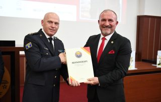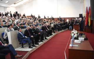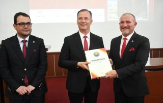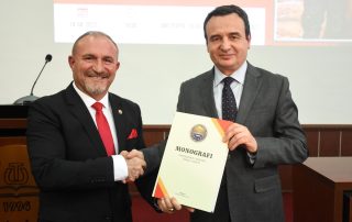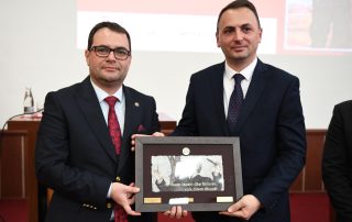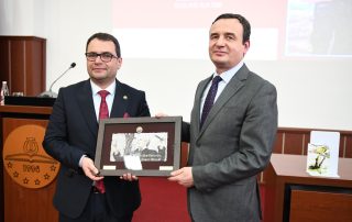At the end of this academy, as a sign of gratitude for the respect they have shown the University of Tetova, as well as to the today’s event, the Rector of UT, Prof. Dr. Kushtrim Ahmeti, together with the President of the Senate, Prof. Dr. Vullnet Ameti, to the Prime Minister of Kosovo, Albin Kurti, Lieutenant General Bashkim Jashari, the Director of the Kosovo Intelligence Agency, Petrit Ajeti, the General Director of the Kosovo Police, Gazmend Hoxha, and the activist of the national issue, Ismet Sylejmani, bestowed the portrait of the first and historical Rector, Prof. Dr. Fadil Sulejmani, together with the Monograph of the University, as well as scientific journals dedicated to important personalities of Albanian history and culture.