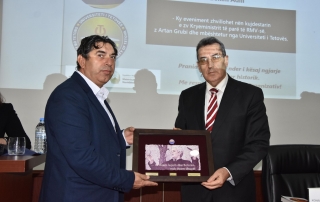 In the end act. Rector of the University of Tetova Prof. Dr. Reshat Qahili, to the author of the book Mr. Bekim Adili and the First Deputy Prime Minister of the Government of North Macedonia, Mr. Artan Grubi bestowed to them a gift as a sign of respect and gratitude.
