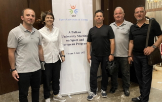 A delegation of the Faculty of Physical Education of the University of Tetova, led by the Dean, Prof. Dr. Shpresa Memishi, accompanied by Prof. Dr. Fadil Mamuti, Prof. Dr. Fadil Nika and Prof. Dr. Kastriot Shaqiri, participated in the Balkan University meeting on Sport European and Programs, which was held on June 2, 2022 in Tirana, Republic of Albania.