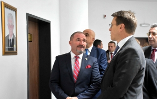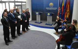 After the meeting, the Ambassador of the European Union to Macedonia, Samuel Zhbogar, at a press conference, praised the achievements that the University of Tetova has marked after all the difficulties it faced since its establishment to this day. “I am very happy to be in Tetovo today, especially at the University of Tetova. I have to say it’s my first visit here. This morning I had a meeting with the Rector of the University of Tetova, Prof. Dr. Vullnet Ameti, and learned something more about University’s history. One can only comment on how this University developed from 1994 when it was an illegal University and grew up in a state university, a University which today has a new campus, new buildings that offer better conditions for the students. I also have to say that I praise the progress of this University in the past years”, said the EU Ambassador in our country, Samuel Zhbogar.