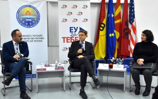 In the capacity of the interlocutor, the host of this debate, Asst. PhD Shefik Shehu presented many benefits and opportunities that the University of Tetova has been using for years, as a participant in many research and development platforms funded by the European Union. Among other things, he emphasized the University’s determination to follow the Euro-Atlantic course, witnessed at some crucial moments, as well as the maximum commitment to the implementation of the reforms deriving from the Bologna process, aiming at aligning with the European Higher Education Area (EHEA). This commitment by the University for continuous updating of academic offerings in all three cycles of university studies and not only, represents only one of the many measures for adequate preparing of youth for the challenges of employment and their empowerment in decision-making and social activation.