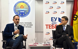 After this meeting, the Ambassador of the European Union, Samuel Zhbogar, participated in an open debate with students on the topic: “The Vision of Youth for the Future of EU”. He said that they are restarting the campaign that the European Union delegation is implementing with the citizens since September for a common future in the European Union, starting with University of Tetova and that the main focus of this campaign are students and young people in general. “With the European Union delegation, we’ve decided to go out of Skopje more often, in order to get closer to the citizens of the country, to hear their opinions. As we know, in September, the European Union delegation is organizing a campaign under the motto: Let’s imagine the future together’. In the framework of this campaign, we have conducted many meetings with citizens across many of the municipalities of your country and in some way the visit to the University of Tetova re-launches and presents a resumption of this campaign. But this time we will focus on the students alone, to talk and listen to their opinions, comments and visions they have for the European Union. We will also hear their suggestions and I, as the ambassador of the European Union, will always be at the service of students and citizens, to explain what the European Union’s standpoints for your country are”, said Samuel Zhbogar, the EU’s ambassador to the country.