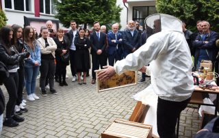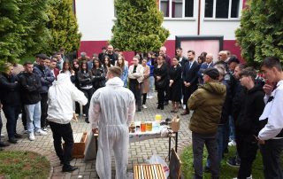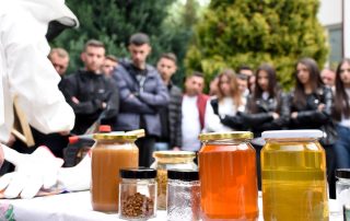 At the end of this activity, the participants had the opportunity to follow a practical demonstration in the University park, led by Agricultural engineer, Nusmir Ramadani, a former student of the Faculty of Agriculture and Biotechnology and a well-known beekeeper of these regions. He clarified the way of cultivating bee societies and their organic treatment.