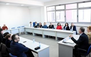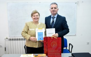 The Dean of the Faculty of Philology, Prof. Dr. Berton Sulejmani, accompanied by his collaborators, held a working meeting with Prof. Dr. Elena Jovanova-Grujovska – Director of the Institute of Macedonian Language “Krste Misirkov” – Skopje, within the framework of the “SS.Cyril and Methodius” University, who was accompanied by her colleagues. During the meeting, concrete steps were discussed for the implementation of the points outlined in the memorandum of cooperation, with a particular focus on joint research projects.