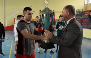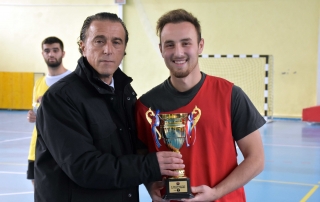 After finishing the final match, prizes were awarded for the first three places. Third place was won by the team of the Faculty of Medical Sciences, while the cup was handed by the Chairman of Student Parliament, Islam Imeri. The team of the Faculty of Philology, as the winner of the second place, was awarded the cup by the dean of the Faculty of Physical Culture, Prof. Dr. Haki Ismaili, while the winners of the tournament were awarded by the Dean of the Faculty of Philology, Prof. Dr. Fatmir Sulejmani. The main tournament cup, the transitional cup (which stays one year in the wineglasses of the winning faculty, to be transferred next year to the other faculties), was shared by the Rector of the University of Tetova, Prof. Dr. Vullnet Ameti.