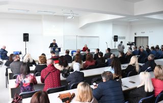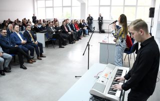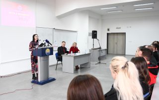 This activity was enriched with an artistic component. Initially, Altina Sulejmani, a student in the Albanian Language and Literature study program, recited the poem “Gjuha shqype” (Albanian Language) by Gjergj Fishta, while students from the Faculty of Arts, Melisa Loki and Abdulla Xhaferi, performed a musical piece.
