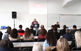 The Dean of the Faculty of Philology, Prof. Dr. Berton Sulejmani, in his speech on this solemn occasion, emphasized that the Congress of Manastir had great importance not only for the alphabet and the national literary language but also for education and culture. He also highlighted its significance for the Albanian National Movement as a whole. “It is rightfully said that, after the League of Prizren, this is the assembly that brought together Albanians from all regions of our country, giving the first signal for the national independence of the Albanian people. Additionally, for the first time in our history, it opened the path for congresses to discuss major issues of our culture. The letters of the Albanian language are part of the Latin alphabet, but the writing system and graphic system of Albanian have some characteristics that give it a distinct character. To demonstrate that even the Albanians of these regions (today North Macedonia) have also addressed issues related to the Albanian language alphabet, I will conclude this speech with an assessment of Prof. Dr. Petro Janura (founder of the Department of Albanianology in Skopje (1951), as well as the first editor-in-chief of the newspaper “Flaka e vëllazërimit”( The flame of Brotherhood) in 1945)) who fifty-four years ago, in his work titled “From the history of the alphabet of the Albanian language,” published in Skopje in 1969, he wrote: “Today’s alphabet, was prepared over centuries by enthusiasts of writing and Albanian culture, officially it was stylized in its definitive form and put into effect in 1908, a date that was ratified from 1912, even though no order was given on these dates, the ethics of national integrity, which brought forth these dates, became an order for this alphabet to be universally accepted,” said, among other things, the Dean of the Faculty of Philology, Prof. Dr. Berton Sulejmani.