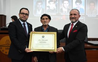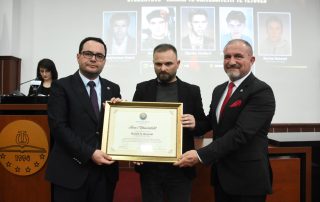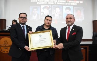 “Based on Article 94 of the Law on Higher Education (“Official Gazette of the Republic of North Macedonia”, no. 82/18 and “Official Gazette of the Republic of North Macedonia”, no. 178/2021), as well as article 85 of the Statute of the University of Tetova, the Senate of the University of Tetova, in the meeting held on April 13, 2023, brought: DECISION to award the title: Martyr of the University of Tetova Abdylselam Emini. This title is given to the martyr Abdylselam Emini for the promotion of higher education in the Albanian language, the special contribution to the cultivation of national traditions, language and history, as well as the dedication to achieving the national aspirations for freedom and democracy of the Albanian people. Likewise, the Senate of the University of Tetova has brought the same Decision to award the title: Heroes of the University, to the students and martyrs of the nation: Xhemil Abdurrahmani, Zijadin Zymberi, Burim Huseini and Bedri Halimi. This title is given to the students and martyrs of the nation for the sublime sacrifice, the special contribution to the development of education, the cultivation of the national traditions of language and history, as well as the dedication to achieving the national aspirations for freedom and democracy of the Albanian people”- declared in front of dozens of participants in this academy the President of the Senate, Prof. Dr. Vullnet Ameti. The aforementioned titles, together with the logo, the flag and the Monograph of this institution, were bestowed by the leadership of the University to the families of the martyrs and heroes of UT.
