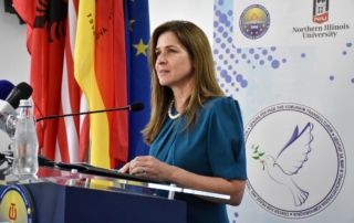 The objective we have taken upon ourselves in framing this program is thus to advance our understanding about the rule of law and human rights by exploring them in the fullest possible way. We have tried to organize this event in a way that participants are tempted to ask what the institutions, the elections, the judiciary, the government, the courts, the law, the amendments, the norms have to do with me and us and why the rule of law is of a great importance in order for these institutions to function properly and everyone to be equal in front of law. I am quite certain that even in the most stable societies the rule of law remains an unfinished project and North Macedonia is a typical example that rule of law and justice is not a matter of calculation but a matter of principle”,- said the Director of the Center for Peace and Transcultural Communication of the University of Tetova- Northern Illinois University (USA), MSc. Donika Kamberi.