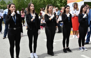 The stands of the thirteen academic units at the University of Tetova, which promoted study programs for graduates, and the stands of companies participating in the fair, were also visited by the Rector of UT, Prof. Dr. Vullnet Ameti and his team. For the seniors and students who were present in this educational-scientific activity, performed the well-known artist from Albania, Jonida Maliqi, with her song ” Ktheju tokës “, a competing song of Albania at “Eurosong 2019”.