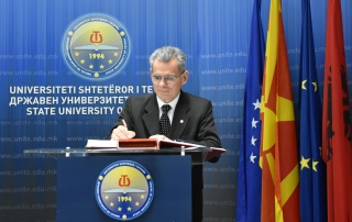 After the meeting, the two rectors exchanged some symbolic gifts and jointly visited the campus of our University. Also, Rector of the University of Tetova, Prof. Dr. Vullnet Ameti, and Rector of the University of Prishtina, Prof. Dr. Marijan Dema, attended the chess competition organized by the Student Parliament of UT.