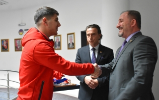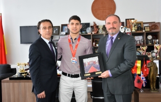 On this occasion, the Rector of the University of Tetova, Prof. Dr. Vullnet Ameti, commended the champion Doan Osmani for his success in championships. He said that with this victory, Doan Osmani, besides being able to make proud Macedonia’s national team, he has also made proud the entire Albanian people in our country and beyond. “With the young champion Doan Osmani we are also proud that he is currently a second-year student at the Faculty of Physical Culture of the University of Tetova.