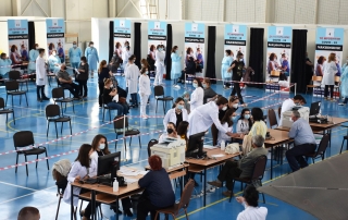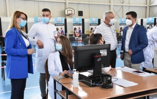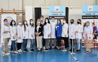 Dean of this faculty, Prof. Dr. Nevzat Elezi, said that the Faculty of Medical Sciences will maintain constant contact with the Ministry of Health and will monitor step by step the vaccination process. “At the moment, this vaccination center set up here in the sports hall of the Medical High School in Tetovo has the capacity to vaccinate up to 1500 people per day, while we as a faculty participate with 23 students. If necessary, our Faculty has the capacity to increase the number of students and to respond to any request from the authorities regarding the vaccination process. I say this because in this center are expected to be vaccinated all citizens of Polog, which includes Tetovo and Gostivar and the surrounding area and there is a possibility that Kicevo will be included in this point. We, as the Faculty of Medical Sciences, will be fully available to coordinate future activities with the Ministry of Health and other authorities. ” – said Prof. Dr. Nevzat Elezi