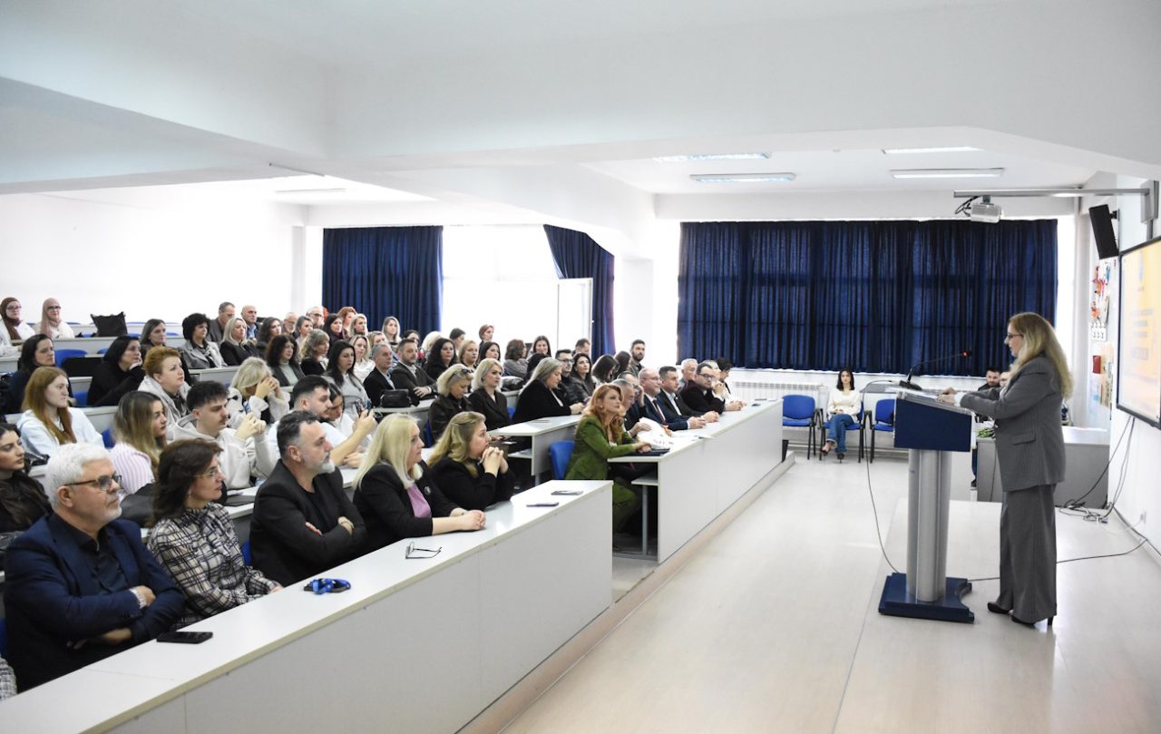 Afterwards, Prof. Dr. Lulzime Lutfiu–Kadriu presented a paper dedicated to March 7, recalling the opening of the first Albanian-language school and the sacrifices made by teachers throughout the years. “March 7 marks one of the most significant dates in the history of Albanian education, associated with the opening of the first Albanian-language school in 1887 in Korçë, which marked a historic moment for our education and our nation. At a time when the Albanian language had no official status in education, the opening of this school represented a courageous step toward the affirmation of national identity and toward emancipation through knowledge. This action was not simply an educational event, but an act of extraordinary importance for our national and cultural emancipation. The first director of this school, the patriot Pandeli Sotiri, represented the model of a teacher devoted not only to teaching but also to the national cause. Thanks to his work and that of many other figures of the Albanian National Awakening, education in the Albanian language took on an institutional form, becoming the foundation of cultural and social development. March 7 is not only a symbolic date, but also a moment of reflection on the transformative role of education that invites us to recall the historical legacy of education and our current responsibility. In the history of pedagogy and schooling, the teacher has always been the most valued personality in society. Although teachers of that time worked under difficult material conditions and faced political and cultural obstacles, they nevertheless played a key role in preserving the language and national identity. The teacher was an authoritative and respected figure, often making sacrifices for the ideal of education in the mother tongue,” – stated Prof. Dr. Lulzime Lutfiu–Kadriu.