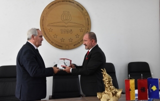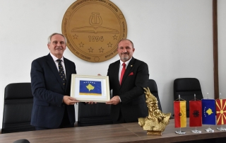 “Dear Rector, let me thank you for the friendly reception in your institution, just as I want to thank you for the good and fraternal treatment of our sons and daughters, students of your university. This institution already well-known in the region provides a direct contribution to the education of hundreds of young people from Kosovo and their professional training. These cadres who graduate from your university make a direct contribution to the statehood of the Republic of Kosovo. I also want to underline the very correct cooperation that you have built with public and private universities from our country and in this way you as universities with joint participation in various international projects have strongly contributed to higher education and scientific research”, declared the ambassador of Republic of Kosovo in our country, His Excellency Gjergj Dedaj.