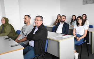 This project aimed to provide new knowledge and skills in media literacy to the students of the Faculty of Pedagogy, specifically teaching them what language to use in public writing, how to identify fake news, and more. The closing activity was declared open by the Dean of the Faculty of Pedagogy, Prof. Dr. Lulzim Mehmedi, who expressed his satisfaction with the dedication and commitment of both students and staff, noting that this project has been beneficial considering the demands of the labor market and the times in which we live. The activity was moderated by the vice dean for science, Asst. Prof. Dr. Teuta Ramadani-Rasimi, and was conducted in two parts. In the first part, a quiz was held with the students, who were divided into three groups. The group that answered the literacy-related questions the fastest were the winners.