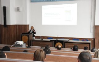 After the meeting with the leaders of the University of Tetova, Mrs. Anne Johansen held a thematic lecture to the students and academic staff of the Faculty of Medical Sciences. The lecture was mainly focused on the activities of the World Health Organization in the Republic of North Macedonia and beyond.