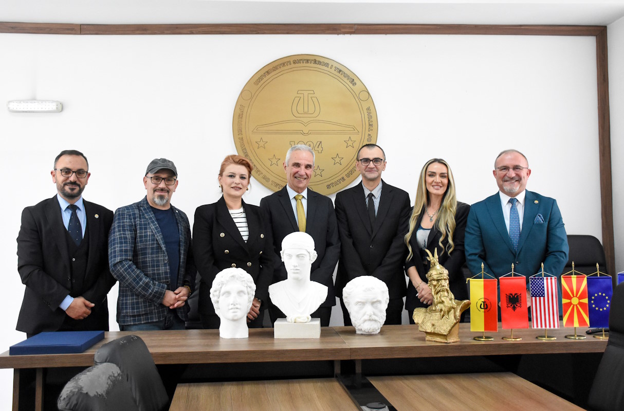 The activity calendar of this event began with the signing of a cooperation agreement between the University of Tetova and the University of Arts in Tirana. The signing ceremony was attended by: Prof. Dr. Vullnet Ameti, Vice-Rector for Science, Prof. Dr. Salajdin Salihi, Vice-Rector for International Relations, Prof. Dr. Aida Yzeiri – Baftjari, Vice-Rector for Finance, Professor, Senad Abduli, Dean of the Faculty of Arts, Doc. Dr. Hatibe Deari – Zeqiri, Head of the Office for International Relations, Prof. Dr. Arian Paço, Vice-Rector for International Relations at the University of Arts, Tirana, and Professor, Agron Bytyqi from the Faculty of Arts at the University of Prishtina.