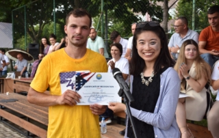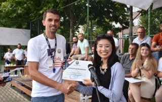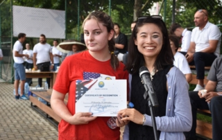To the participants in the beach volleyball match were awarded certificates by the Rector, Prof. Dr. Vullnet Ameti and head of the Public Relations at the U.S. Embassy in the Republic of North Macedonia Jaewon- Oh.