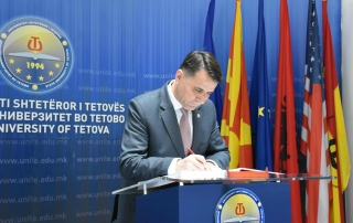 Whereas the Rector of “Kadri Zeka” University from Gjilan, Prof. Dr. Bajram Kosumi, thanked the Rector Prof. Dr. Vullnet Ameti and his staff for the hospitality as well as the fair co-operation they have shown so far. Among other things, he added that “Kardi Zeka” University as a new university needs the experiences of the University of Tetova both in the educational and scientific activity, but also in the inter-institutional cooperation with other universities from the country, region and the world.