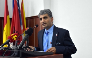 The Dean of the College of Business of the Northern Illinois University, Prof. Dr. Rajagopalan Balaji said that with this study program, our two institutions mark an important moment, proving that we are committed to cooperate for the advancement and prosperity of citizens of our countries. “I would like to thank Ambassador Jess Baily, Rector of the University of Tetova, Prof. Dr. Vullnet Ameti, for the support they give us in this partnership. The leadership of the University of Tetova, with the Rector, Vullnet Ameti and Professor Arbër Çeliku, through the steps they’re taking, are showing their commitment to build the future of Macedonia. Their vision and commitment to promote peace and prosperity of education will help all future generations. The University of Tetova and its leadership are our strategic partners in the Balkans, and we, at the Northern Illinois University, believe that with your University, will create other common platforms as well, which will have an impact on the development of the society, with a focus on solving political problems in the Balkans, by nurturing coexistence through various activities in the region through the Center for Peace and Transcultural Communication. Today we are here to initiate a joint study program of the second cycle of studies and this will be a phenomenal success for both our institutions. The University of Tetova and the North Illinois University share the same values and have the same level of importance for learning and quality improvement” – said. Prof. Dr. Rajagopalan Balaji.