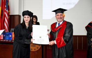 Rector of the University of Tetova, Prof. Dr. Kushtrim Ahmeti, in his speech to the outstanding students, emphasized that the implementation of national ideals and contemporary values in education and science, in order to develop and progress future generations, remain the main vision of the University of Tetova. “This activity, which is organized within the framework of the 28th anniversary of the foundation of the university, aims to support and promote excellent students, of the first cycle and the second cycle of studies, who have achieved high results during their studies, without neglecting their continuity. We are very happy about your achievements during your studies. Efforts for knowledge should never be diminished. The great sacrifice that has been made in the past by all of us, to be right here today, should serve as the most powerful source of energy to achieve success in the future. Never forget that, you are students of a special university in the world in terms of history, so you should always be proud and present the university with dedication in the future, being at the service of work and people. Respect and thank your parents and all those who have supported you during your studies and continue to do good deeds and work to achieve the goals you have set for yourself”, said the Rector of UT, Prof. Dr. Kushtrim Ahmeti.