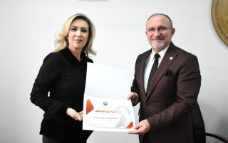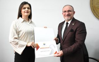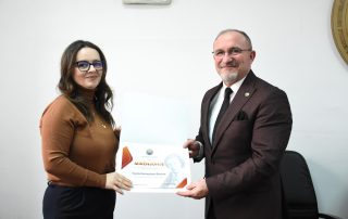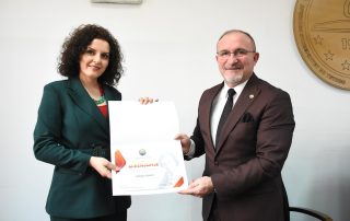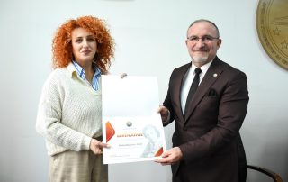 In recognition of their work and dedication in education, culture, and science, the Vice-Rector for Science awarded certificates of appreciation to the present vice-deans. This act was also done in honor of the distinguished figure of the first Albanian female scientist in the field of biology, Sabiha Kasimati, who left an important legacy in the academic and scientific world.