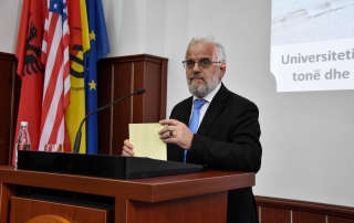 After receiving the gratitude and the gift Prof. Dr. Kimet Jusufi thanked the Act. Rector Prof. Dr. Reshat Qahili and the University for the appreciation they have shown for his scientific contribution. “I think it is an extraordinary day, I feel very proud to be part for the 27th anniversary of the founding of the University and have the honor to receive such gratitude. This gratitude stimulates me to continue to work to achieve scientific results. I also want to emphasize that the University is a national asset of ours and it is our obligation to stimulate students to work in the future for new staff, but at the same time to promote research and introduce the University abroad “- said on this occasion Prof. Dr. Kimet Jusufi.