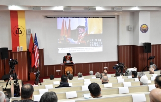 On behalf of the Government of North Macedonia, the participants were addressed by the First Deputy Prime Minister, Artan Grubi. According to him, the 27 years of the University of Tetova are the example of our national efforts for equality in this country. “Our first university went through many challenges in these almost three decades to become a source of freedom, a source of patriotism and inspiration for generations, initially to preserve the roots of identity and to walk free on our just cause of progress. We must definitely mark this day as a triumph of sincere and righteous effort to educate our youth in their mother tongue, to enable them to see without hindrance the horizon of the good things of life that knowledge brings. It is a day of reflection on all common achievements because it brings to mind a whole history of inspiring endeavors that should never be forgotten generation after generation. On this day, we should not forget and should take care to pass on to future generations the contribution of many patriotic families who dared to turn their homes into university auditoriums to survive this University along with the sublime sacrifice of Abdylselam Emini.