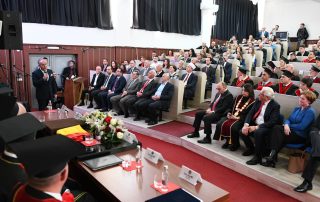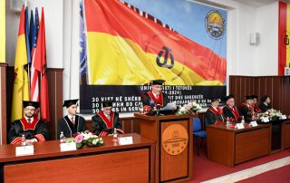 The ceremony was declared opened by the Rector of the University of Tetova, Prof. Dr. Jusuf Zejneli, who provided a retrospective of the educational and scientific events that have taken place at our university. He also spoke about the many processes that have developed since its foundation and the entire activity of the University of Tetova up to the present day. Furthermore, the focus of his speech was on all the activities carried out throughout 2024. “While we celebrate our past and present, we must also look ahead with courage and ambition. The challenges of this century, rapid technological advancements, environmental crises, and social inequalities – demand that universities be more than just centers of learning and study. Universities must be centers of innovation, sustainability, and social responsibility. Universities need to create as many connections as possible with the community and consider the new demands emerging in the job market. These are goals that we are pursuing with dedication and a long-term strategy. Let this anniversary serve as a reminder of our duty to adapt, grow, and lead in transformative times. Our vision for the future encompasses not only academic excellence but also a commitment to equality and inclusiveness. This historic moment would not have been possible without the unwavering support of many people. To our students and graduates: you are the spirit of this institution, the reason for our existence, and the proof of our success. To our faculties and staff: your dedication is the foundation upon which this University stands tall. To our partners and supporters: your trust in our mission has been essential and inspiring throughout our journey”, – said the Rector of the UT, Prof. Dr. Jusuf Zejneli.