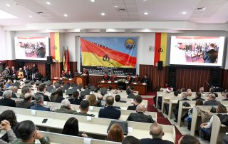 The Chairman of the Coordinating Council of the Diaspora in the USA, Mr. Mark Gjonaj, expressed his pleasure at being part of this festive ceremony. “My heart is filled with pride because I am visiting my people, who share one blood, one language, and one history. Albanians have fought throughout history for the right to education. Albanian teachers were fired and imprisoned. Albanians have suffered and sacrificed to learn in our language. The University of Tetova was founded by Prof. Dr. Fadil Sulejmani and others in 1994, and it was met with opposition. On February 17, 1995, Albanians at the University protested against the government, and in the end, there was one death, many wounded, and many unjustly arrested. Today, 30 years later, the University of Tetova is a success and a historic moment for Albanians. With 13,000 enrolled students, the University is a pillar for our nation. The University of Tetova produces intellectuals and preserves Albanian identity and culture. But, even though we are gathered today to celebrate, let us remember that our work is not over. We should not only look at the past 30 years, but also at the next 30 years, where the University will continue to produce Albanian leaders for the future who will contribute not only to North Macedonia but to the world”, – emphasized, among other things, Mr. Mark Gjonaj.