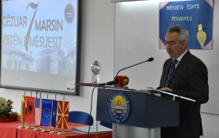 The Faculty of Pedagogy of the University of Tetova, with an academic celebration observed March 7th, Teacher’s Day. The Dean of this faculty, Prof. Dr. Fatbi Osmani, in his greeting speech, recalled the sacrifice and contribution to the Albanian revivalists and all the veterans of the Albanian education and school. “The contribution and sacrifice for the Albanian school and education obviously make us more responsible in our professional and scientific work, i.e. besides the observance of this historic event, we also consider the responsibilities for our actions, how open and positive we are, how transparent, conscientious and constructive we are, not to mention the need to manifest the increased approaches and responsibilities of institutional relationship between the implementers of the teaching and scientific activity and in particular in our daily work with the students”, said Prof. Dr. Fatbi Osmani.