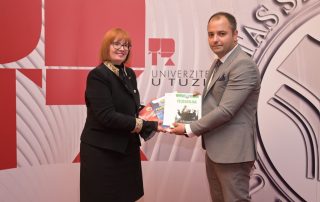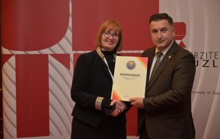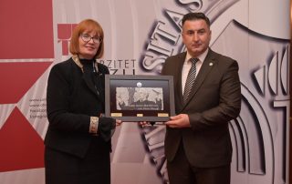 As a sign of respect for the cooperation over the years, Rector Prof. Dr. Jusuf Zejneli, to the host of the conference, Rector Prof. Dr. Nermina Hadzigrahic, at the same time the President of the BUA, bestowed the portrait of Prof. Dr. Fadil Sulejmani, the Monograph and some special issues of journals of academic units at UT.