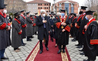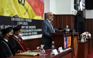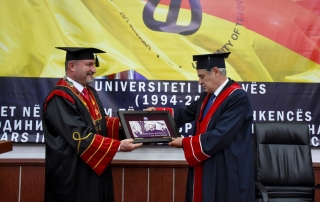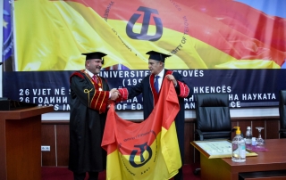 “The motivation to declare him an honorary doctor of UT is driven by our respect, as an institution: for his outstanding contribution to the national cause; for the freedom of the people of Kosovo; for the advancement of the national and civil rights of the Albanians in the Republic of North Macedonia; for the continuous commitment in the integration of the country and the region in the Euro-Atlantic family; for the institutionalization and modernization of the University of Tetova, as a public institution of higher education. We appreciate that the University of Tetova has always been one of the primary issues in his vision, commitment and discourse since the beginning of his political activity in the Republic of North Macedonia”, emphasized among others Doc. Dr. Shefik Shehu.