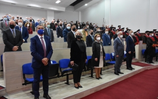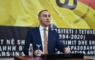 In the central manifestation, which was held in the amphitheater of the Rectorate, a large number of personalities from our country, the Republic of Kosovo and the Republic of Albania were present. After the intonation of the university anthem, the solemn academy was declared open by the Rector of the University of Tetova, Prof. Dr. Vullnet Ameti. According to him, 26 years ago, on December 17, 1994, the first university in the Albanian language in our country was established – the University of Tetova. “This was a year of great historical turning point for higher education in the Albanian language. This date opened new perspective windows for thousands of young people and created opportunities for generations of students and professors, who undertook the noblest mission of developing education and science in our native language. The societies of the civilized world, which rise above the supreme values of freedom and democracy, have seen in universities human, civic and national progress. I believe that our University, with its work and activity of almost thirty years, has justified the expectations of our society, which has served with unparalleled devotion and dedication in the education and professional preparation of thousands of staff of different profiles. The countries of the Western Balkans have experienced periods of numerous antagonisms, clashes, conflicts and uncertainties. They have faced problems that did not serve the general peace and stability in the region where we live and work. The solution to these problems lies in emancipation and proper education. Only through them can differences, prejudices and obstacles between peoples and societies be overcome. We appreciate that the University of Tetova has made an undeniable contribution and has acted institutionally in the demolition of these walls, which for several decades blocked the development and progress of the country. The University of Tetova has built bridges of cooperation, rapprochement, understanding and exchange of different experiences instead of walls. At all times, for all situations, it is rightly stated that everything good that comes to humanity has its source in universities, which despite everything continue to remain the point of reference for a better future. In this precarious world, when humanity is plagued by a common concern and disturbed by the health challenge posed by the Covid-19 pandemic, universities around the world have activated all educational and research capacities for the benefit of mankind. Even the University of Tetova, through the Faculty of Medical Sciences, academic staff, our doctors, since the first days of the declaration of the pandemic, was engaged in the first line of battle against the invisible enemy. Twelve other academic units, respectively our faculties, contributed in various forms, organizing online activities to raise public awareness to respect the measures against the spread of Covid – 19” said the Rector of UT Prof. Dr. Vullnet Ameti.