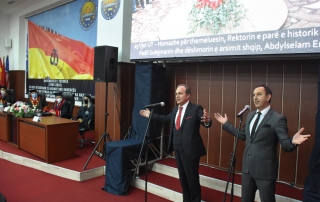 Then the laureate of the Doctor Honoris Causa of the University of Tetova, the activist Mr. Ali Ahmeti addressed to those present in the auditorium. He said that this title and this honor given to his personality is dedicated to all those who have contributed to the opening and establishment of this university. “This honor and this title is given to Abdylselam Emini on the occasion of the 26th anniversary of his fall. To all the soldiers, patriots and missionaries, patriots, teachers and torchbearers of education who kept their souls alive by lecturing in the dark and in secret about the lost freedom and the innumerable sacrifices of our people and nation. It is dedicated to all our renaissances because they taught us “Only the light of knowledge will lead us forward”.