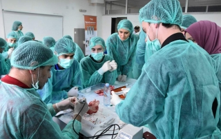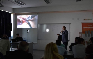 The other workshop was held with students of the Dentistry study program, who, for four days, attended a course on the “Principles, Diagnostics and Implant Planning, and Implant-Prosthetics therapy”, led by Prof. Ass. Jetmire Alimani – Jakupi and Dr. Danco Bizevski. During this workshop the participants worked and analyzed the basics of oral surgery, the head and neck anatomy, sterilization, conditions of sepsis and antisepsis; the practical part of the workshop included patient simulation, operating on animal jaws, placement of implants, prosthetic planning, implant placement in the jaw, placement of gingival former, making implant impressions.