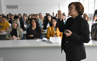 For the students of the medical sciences a workshop on “Basic life support – automated external defibrillation BLS – AED” was conducted, under the guidance of Ass. Prof. Basri Lenjani and Ass. Prof. Agron Dogjani. This workshop involved a training with 3 hours of lectures and 5 hours of practical demonstration. During this time the students were trained and acquired the necessary skills for BLS – AED; external massage, airway opening and artificial rescue breathing in accordance with the recommendations of the RKP – AHA – ECR 2015, by applying the standard of AED use in Europe and the world. It included the care of people with lost consciousness, ways of rescuing cases with blocked airways due to foreign bodies, bleeding and methods of stopping bleeding, first aid to the injured, by recognizing all kinds of injuries and their care at the level of first aid. Particular attention was paid to the techniques of training, lifting and transporting the injured: with a single rescuer or more, without equipment and with the use of standard or improvised means of transport, and the mobilization of the injured. Upon completion of the training program, all trainees attending the training were awarded certificates of acquired skills in applying BLS – AED measures, which aims to equip the health care professionals, doctors, students, nurses and the non-medical staff, with skills for life-threatening cases.